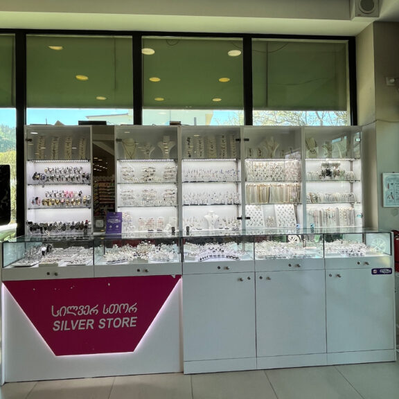 Our Stores Find our main branch on the map. 01. Tbilisi Varketili, Phoenix mall, second floor. 02. Rustavi Megobroba #8. 03. Telavi Erekle II #1. 04. Kutaisi Karvasla Shopping Center, first floor. 05. Gori Garden Mall, Royal Street #70. 06. Zestafoni Autobani, Supermarket Smart. 07. Bakuriani Agmashenebeli #66, Supermarket Spar. 08. Batumi Tbel Abuseridze #22, Carrefour. HEADQUATERS Phone: +995 599 41 45 09Email: silverstore.collection@gmail.comAddress: Tbilisi – Varketili, Phoenix Shopping Center, second floor.Working Hours: 10:00 – 20:00 Facebook Instagram